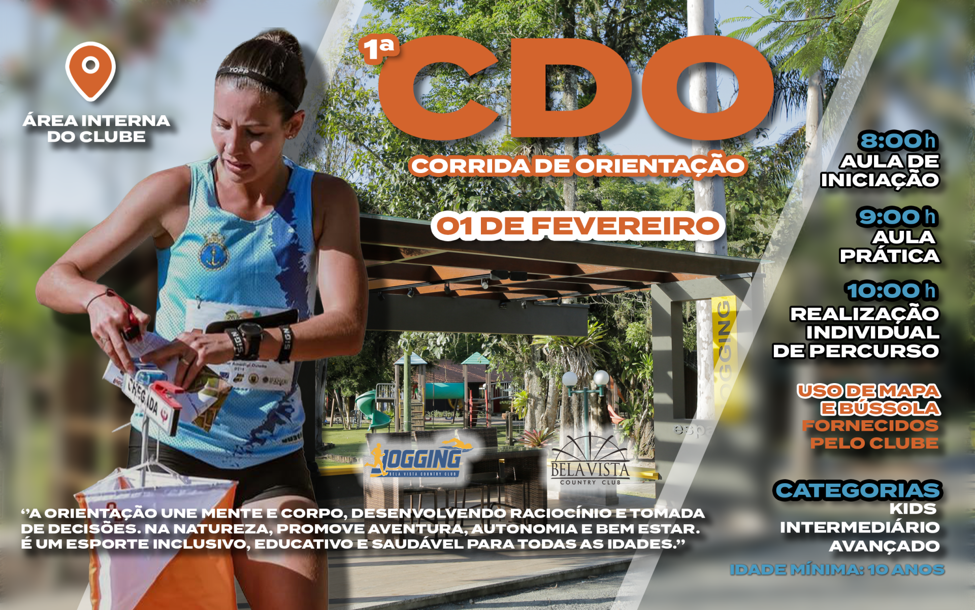 A Corrida de Orientação é um esporte que combina corrida e navegação, no qual o atleta utiliza mapa e bússola para encontrar pontos de controle espalhados pelo percurso. Vence quem alia velocidade e precisão!
